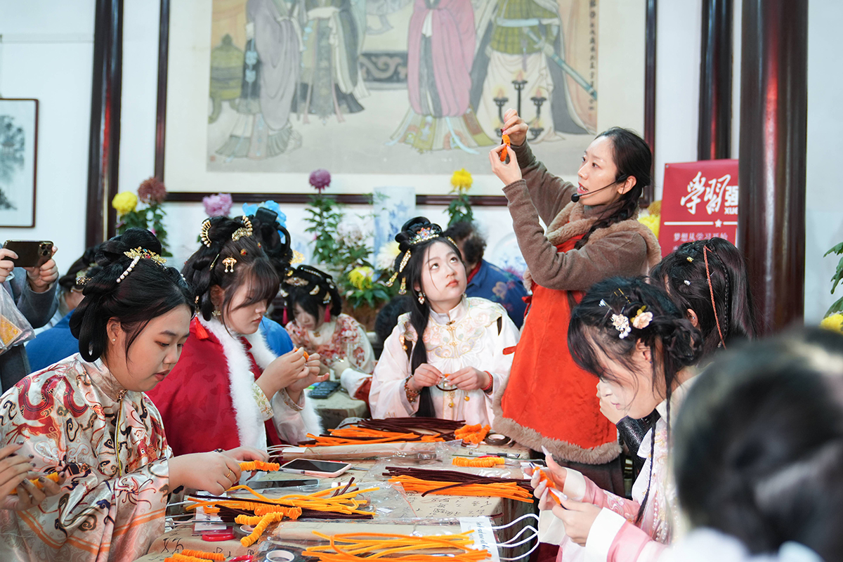 在杨公祠内,活动精彩继续。传统手工艺制作让同学们在亲身实践中感受非遗魅力;古琴雅韵、翰墨书香营造出浓郁的文化氛围;花神走秀则展现了传统服饰的典雅之美。这些沉浸式体验让年轻学子在动手参与中深化了对中华优秀传统文化的认知。