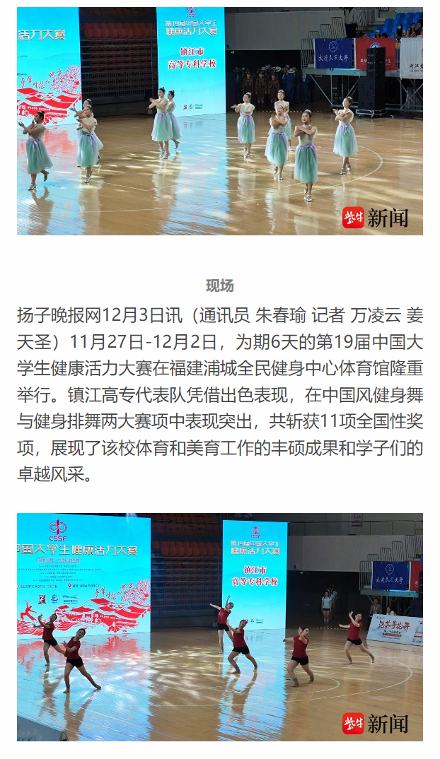 紫牛新闻|金山网|11 项国奖闪耀赛场!镇江高专学子在全国大学生健康活力大赛中绽放青春风采 信息来源:体育部发布时间:25.12.04阅读次数:326 媒体链接:紫牛新闻:https://wap.yzwb.net/wap/news/4863885.html?timestamp=1764754176973金山网:https://www.jsw.com.cn/2025/1203/1936132.shtml