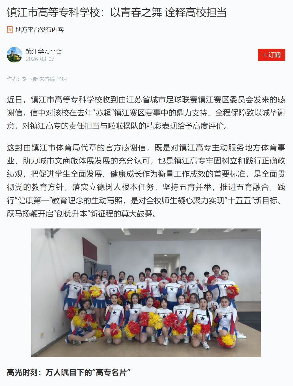 “学习强国”学习平台|扬子晚报网|镇江市高等专科学校:以青春之舞 诠释高校担当