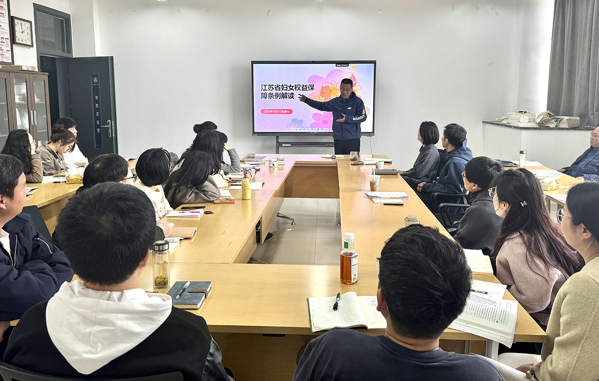 活动伊始,大家进入“法治时间”。围绕《江苏省妇女权益保障条例》,马克思主义学院教师戚兴伟用贴近生活的案例和通俗易懂的语言,解读婚姻家庭、劳动权益、职场保护等内容,帮助大家明晰了法律赋予的权利与保障途径,引导女教职工学会运用法律武器维护自身合法权益。并呼吁维护女性权益需要全体社会力量的共同关注。