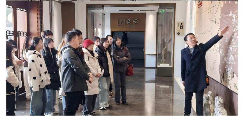为深入贯彻国家“数字+文化”融合发展战略,聚焦直播电商赋能传统文化产业升级,12月4日,财经商贸学院与艺术设计学院的22名师生赴宜兴开展紫砂陶文化与电商融合主题研学活动,依次走进宜兴博物馆、制陶大师马永强工作室及木石·陶文化数字产业园,实地探寻传统紫砂陶产业与直播电商的融合发展之道。 研学首站,在宜兴博物馆文物与史料展陈间,解说员梳理了紫砂陶的发展历程、工艺特色与文化内涵。从明清经典紫砂器到