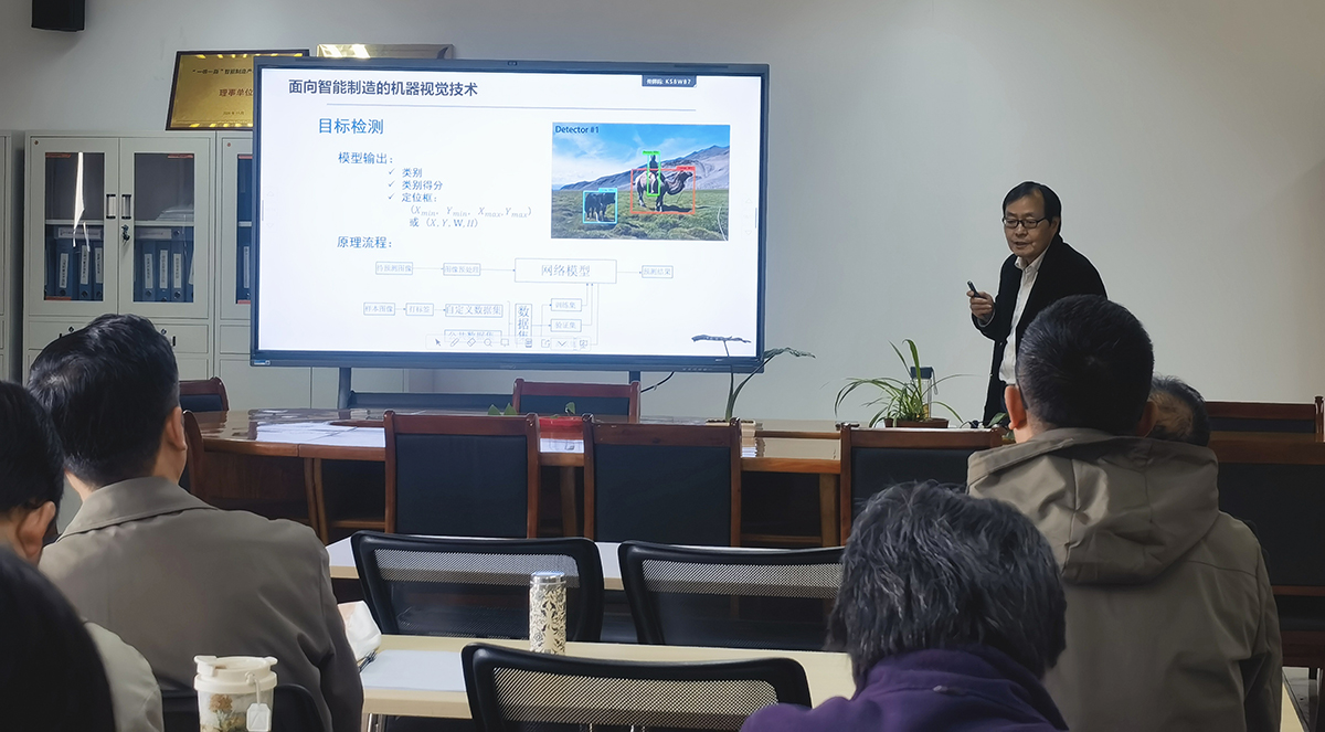 4月1日下午,江苏大学机械工程学院教授顾寄南应邀为现代装备制造学院师生主讲了一场以“视觉自主识别、高精度定位与智能化缺陷检测研究”为主题的专题学术讲座。学院党总支书记许学军、专任教师及部分学生代表参加了讲座。讲座由学院院长钱绍祥主持。 讲座中,顾寄南教授首先介绍了智能制造的功能结构及机器视觉技术,重点对智能制造的机器视觉技术、智能制造的优化调度方法、智能制造的执行系统自组织方法进行了讲解,