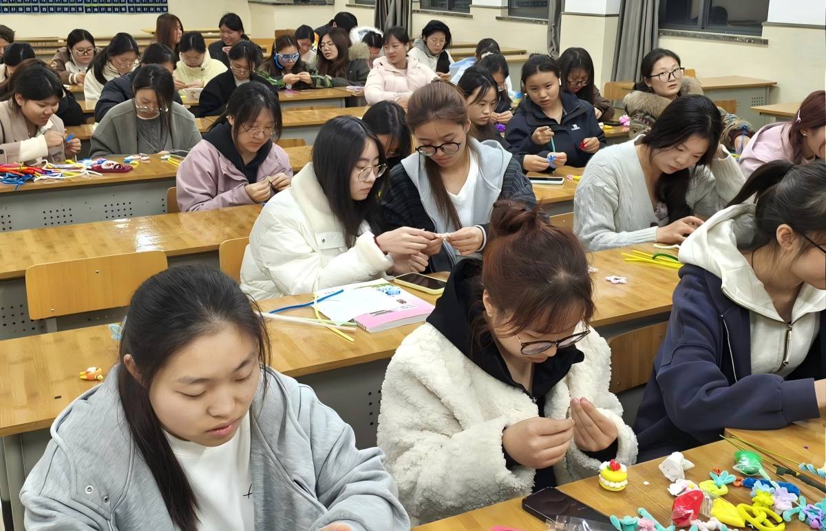 近日,丹阳师范学院举办“知恩于行,手作传情”手工创作主题活动。本次活动面向全院获得国家奖、助学金的学生,以“感恩励志、笃行成才”为核心导向,引导受助学生铭记国家关怀、感念学校培养,将感恩之心转化为奋进之力。 活动现场暖意融融,同学们踊跃参与、潜心创作,扭扭棒、粘土等普通材料在指尖焕发生机。大家结合自身专业特长,紧扣“感恩”“回馈”“希望”三大主题,精心制作幼儿教具、卡通玩偶等作品,每一件手作
