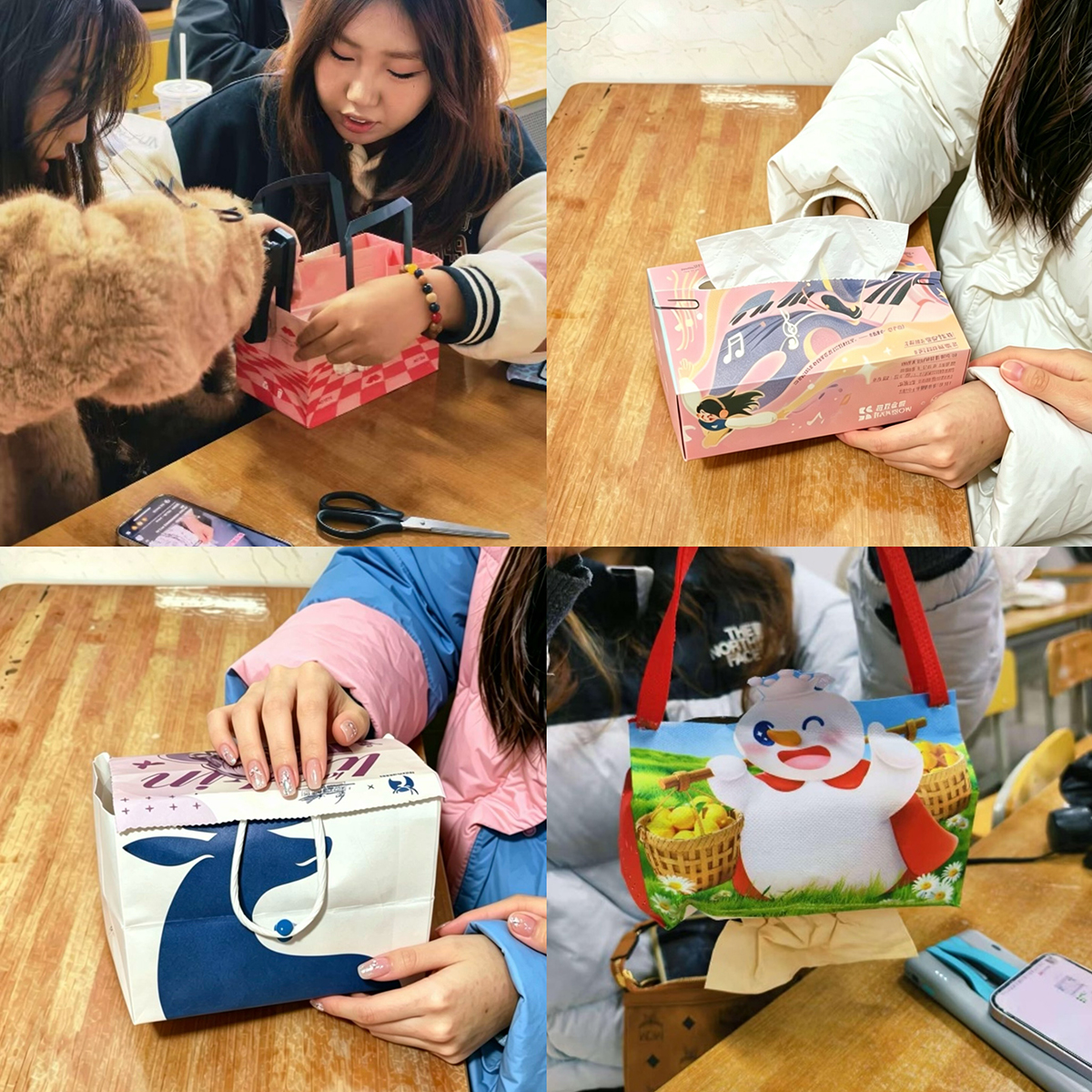 为强化大学生生态文明意识,提高动手实践能力,近日,财经商贸学院开展“变废为宝,智改外卖袋”主题活动。全院50余名学生积极响应,通过创意改造赋予废弃外卖袋新的使用价值,以实际行动推动资源循环利用。 活动现场,同学们围绕“实用、美观、环保”原则展开创意改造。大家先将收集到的外卖保温袋分类清洗、裁剪,再结合缝纫、拼贴、彩绘等技巧,让闲置袋子焕发新生:有的将银色保温层与布料拼接,制成大容量收纳盒,用